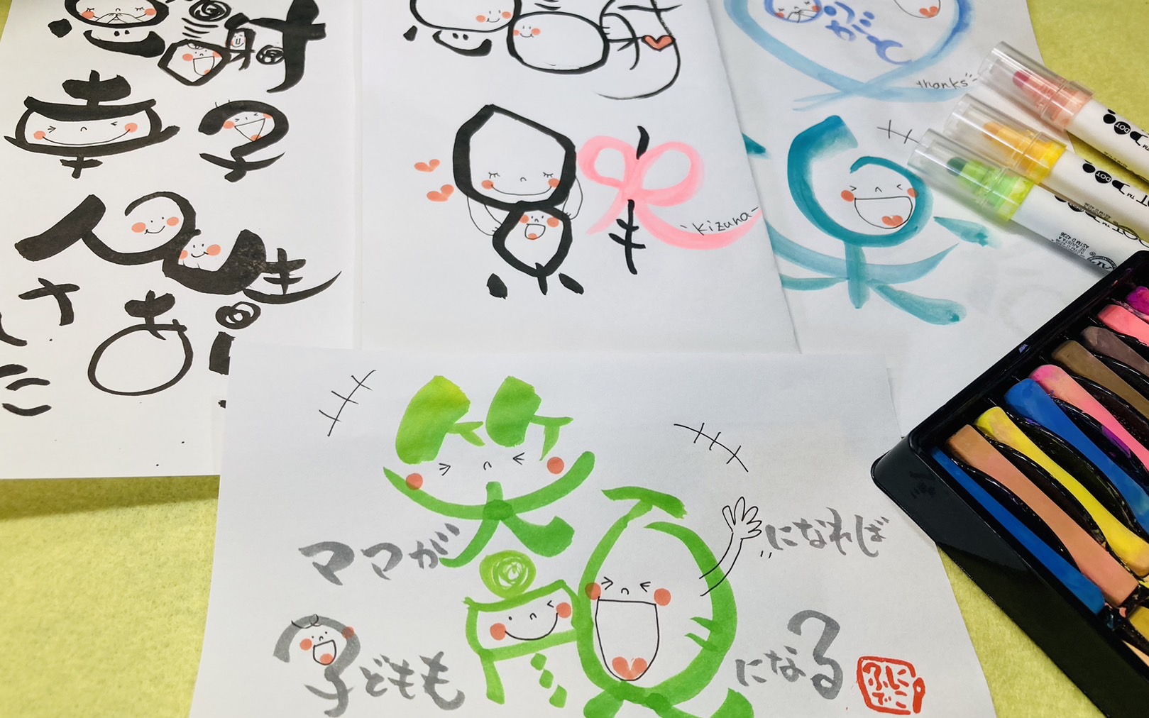 顔文字のさまざまな表情を表現するときは、ネット検索して筆文字の漢字の意味に見合った表情を探して描いてみてくださいね。