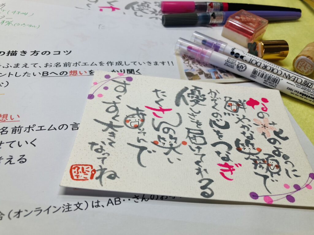 にこふで名詩(*お名前ポエム)は、お客様にとっても喜んで頂ける商品で、一番需要のある商品になります♬特に、④の心を動かす作品のコツが大切になってきます! (*お名前ポエム:他の方が商標登録されており、公では使用できません。インスタでもご使用...