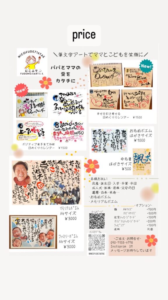 - 筆記具、筆ペン類一式、パステル、画仙紙、フォトスタンド、お名前ポエムテンプレート
