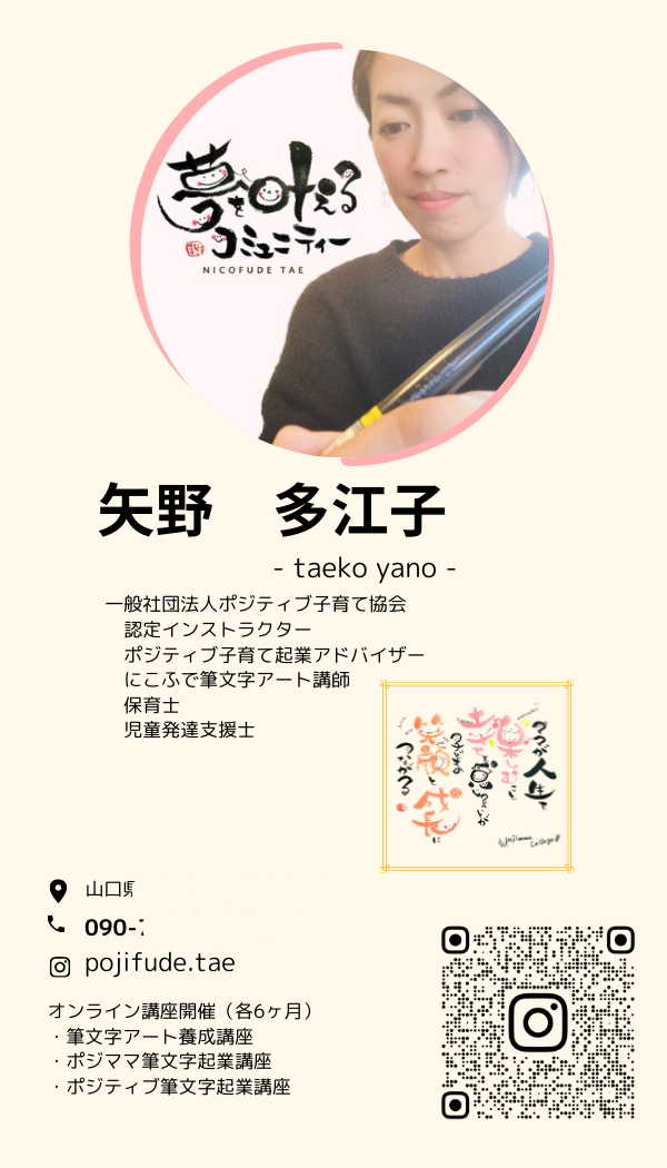 今は、私の持っているスキルをお伝えして、皆さんがどんどん輝いていかれるお姿を応援させて頂くことが私の一番のやりがいとなってますので、ぜひ、認定講師になり、各地でにこふで筆文字アートをお伝えして頂き、笑顔がひろがっていくことが私の夢です!