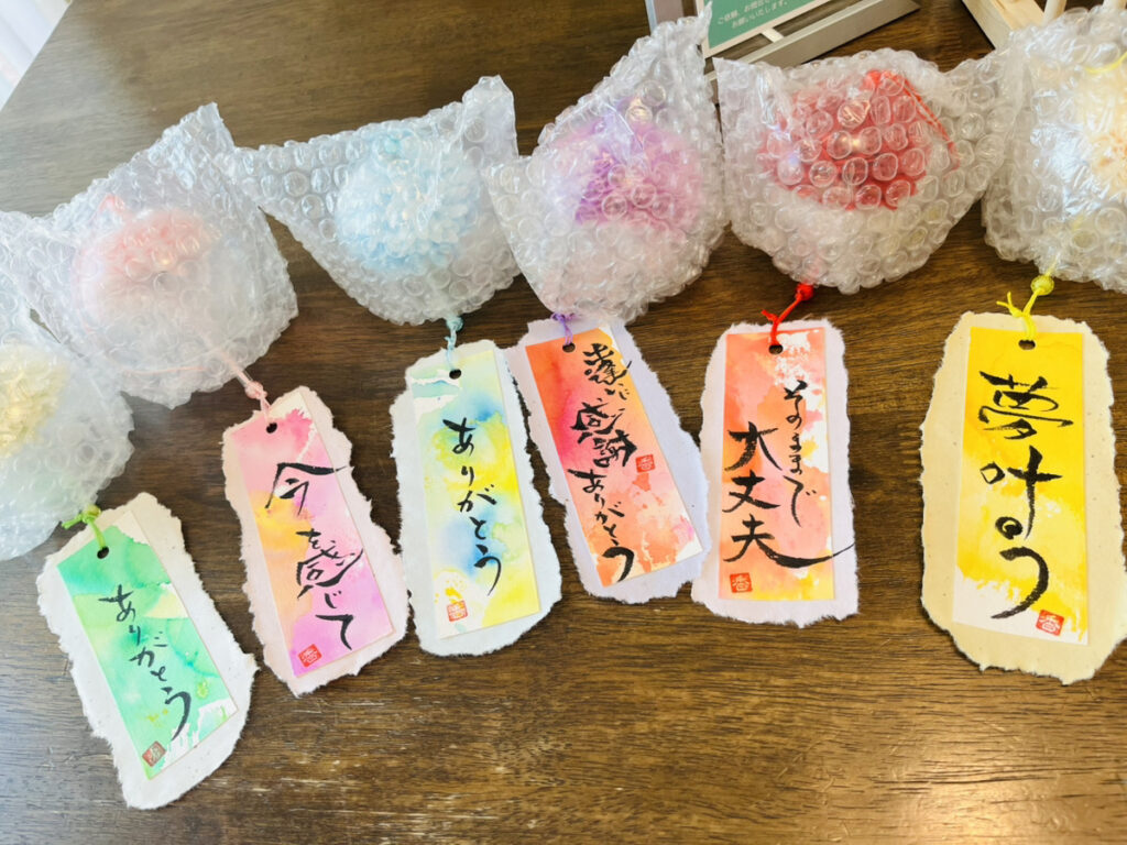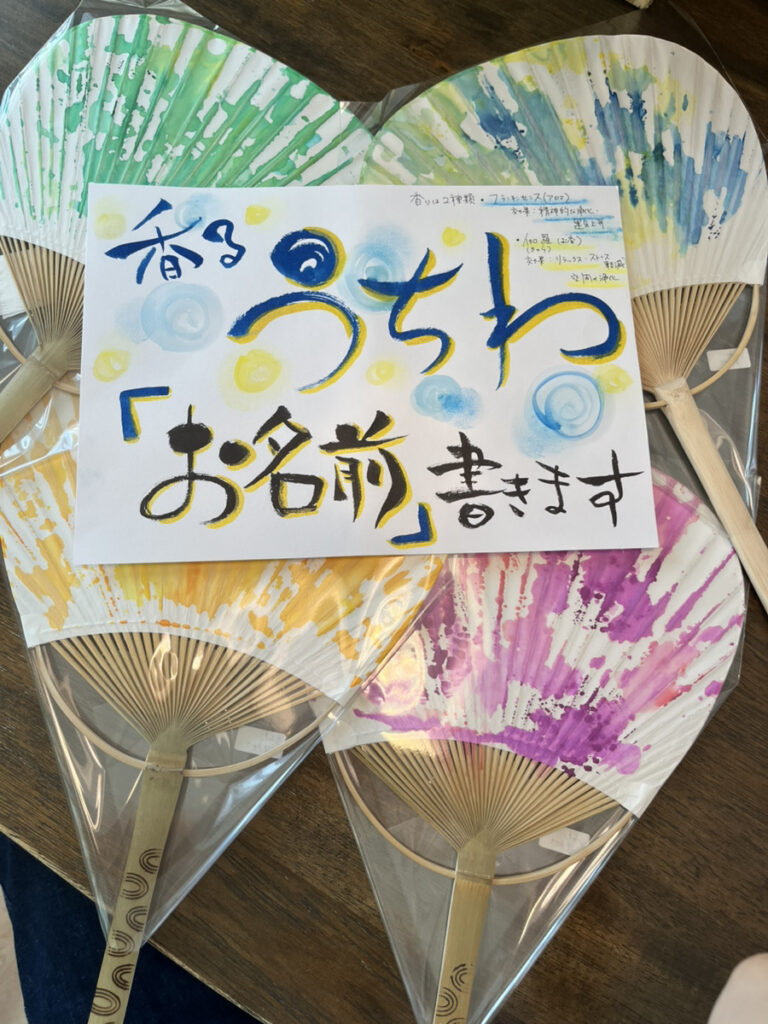 杉のうちわは少し高いですが、扇ぐとほんのり杉の香りもして癒し効果もあり筆との相性もいい感じです。
